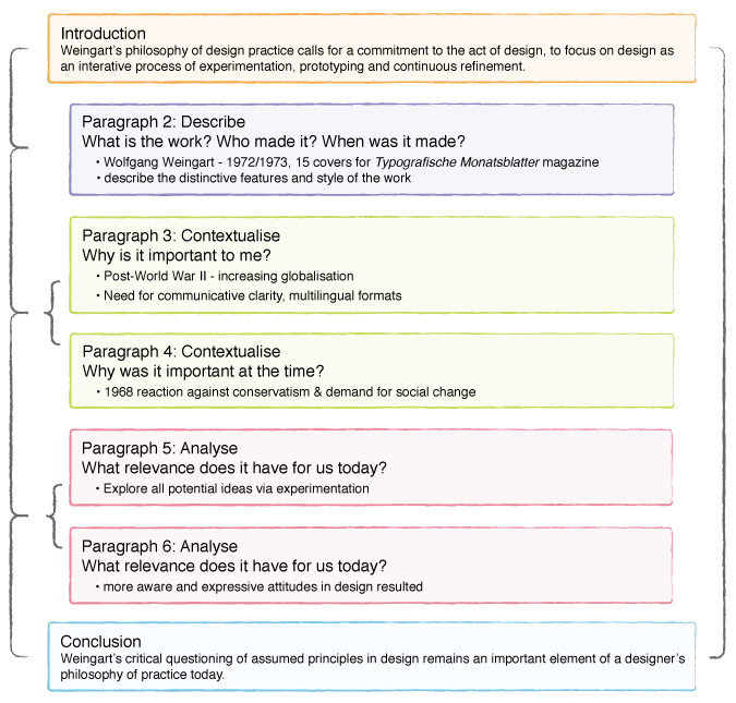 The structure will help you plan and organise your response to the task - an analysis of a particular work of communication design from the twentieth century.